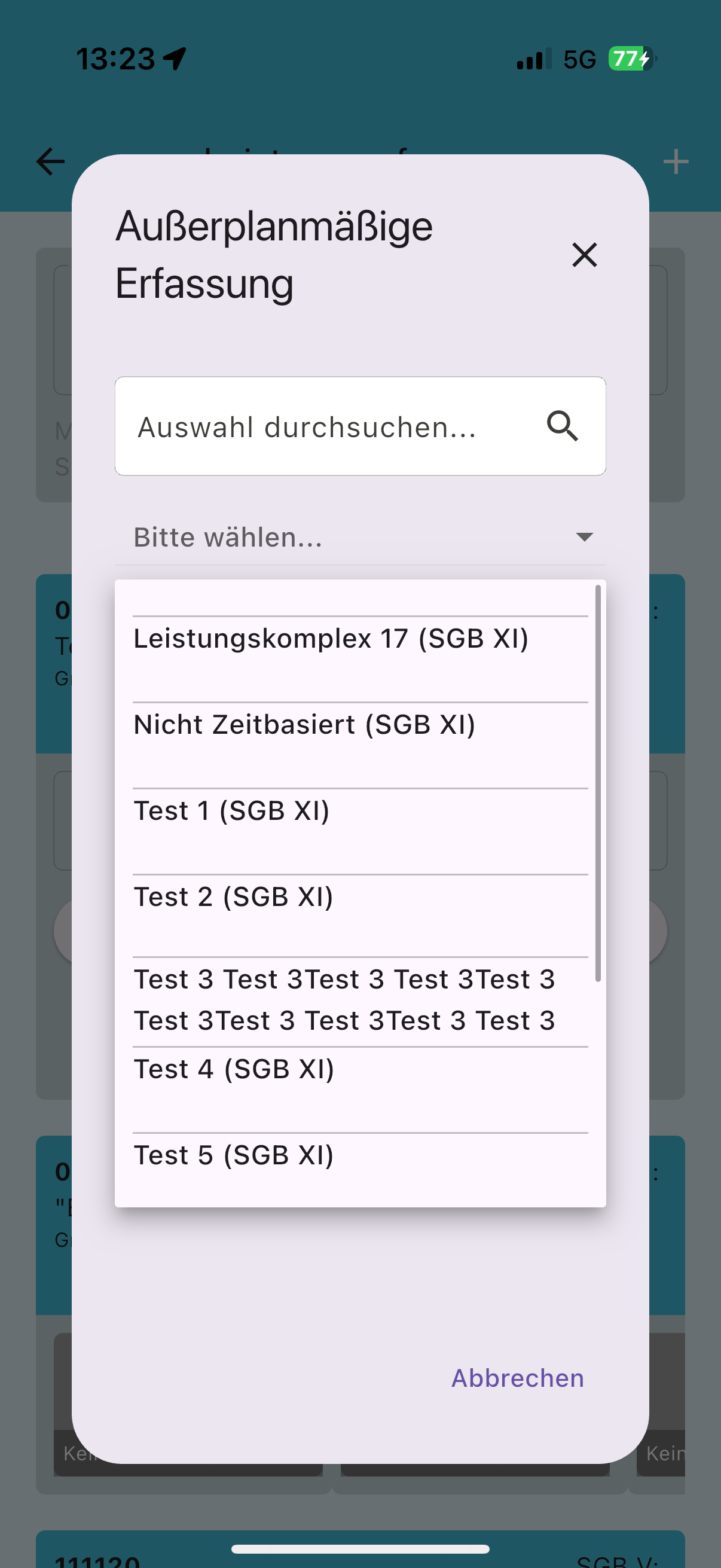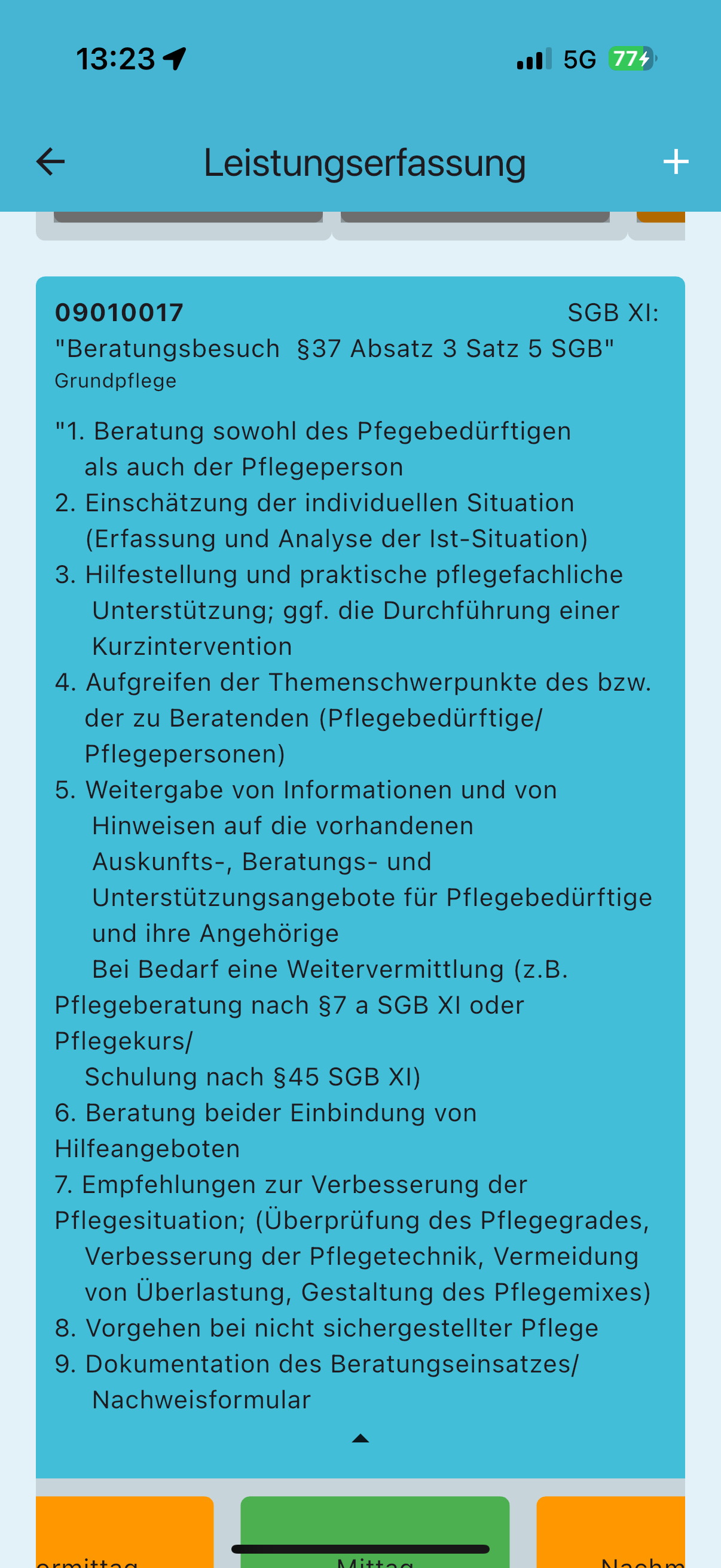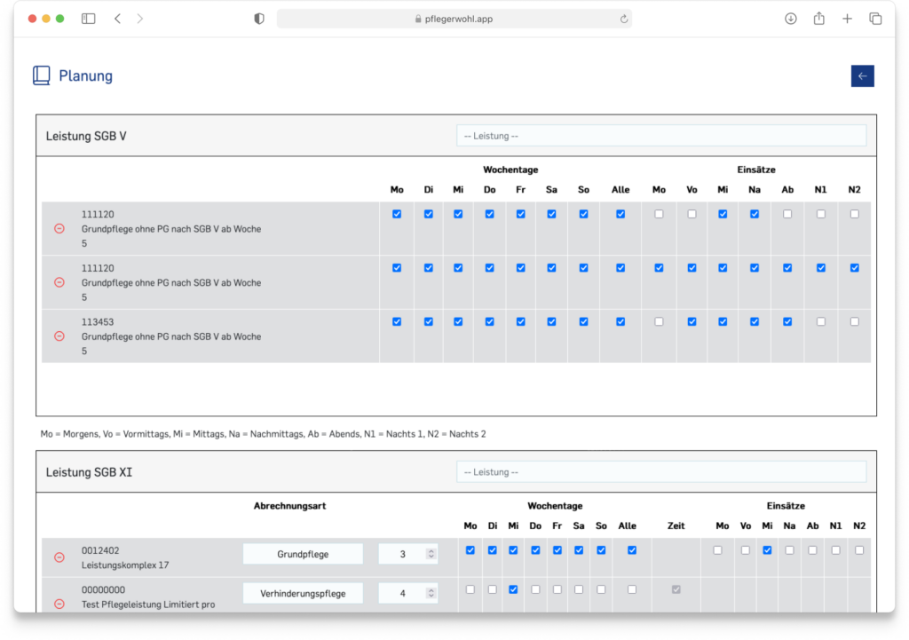 Mitarbeitende wählen Standort und Klient, schon sehen sie alle geplanten Leistungen des Tages.